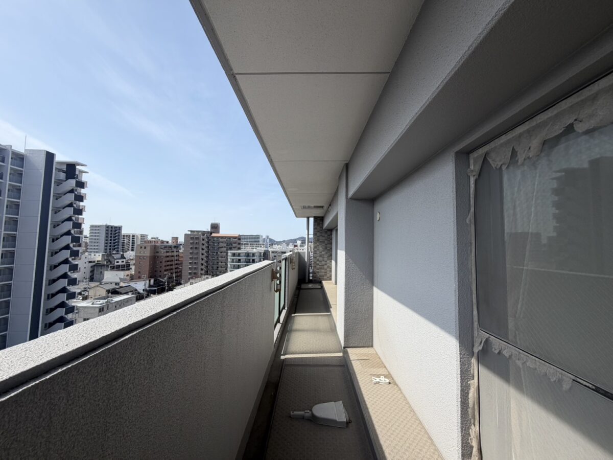 長いバルコニーに、たくさんの窓。