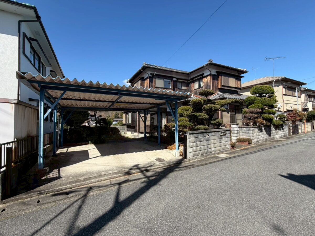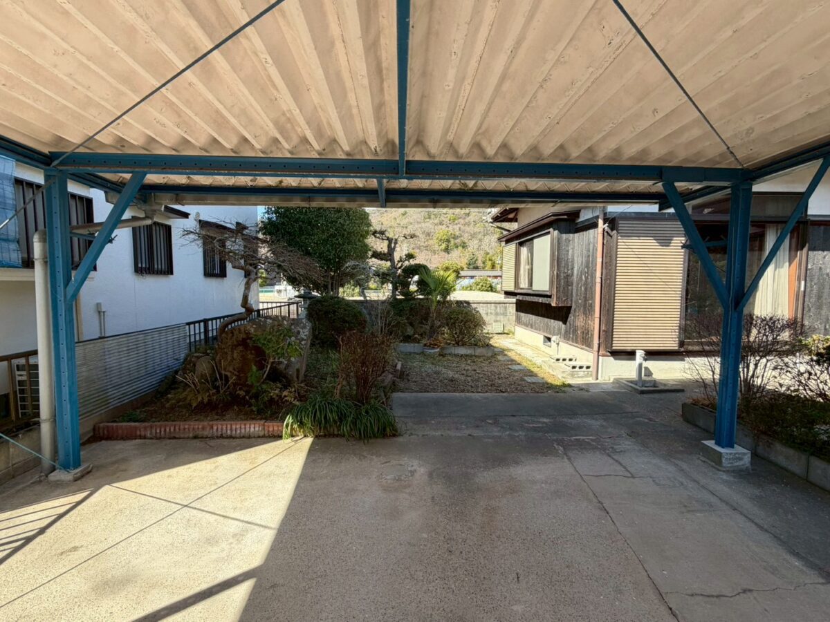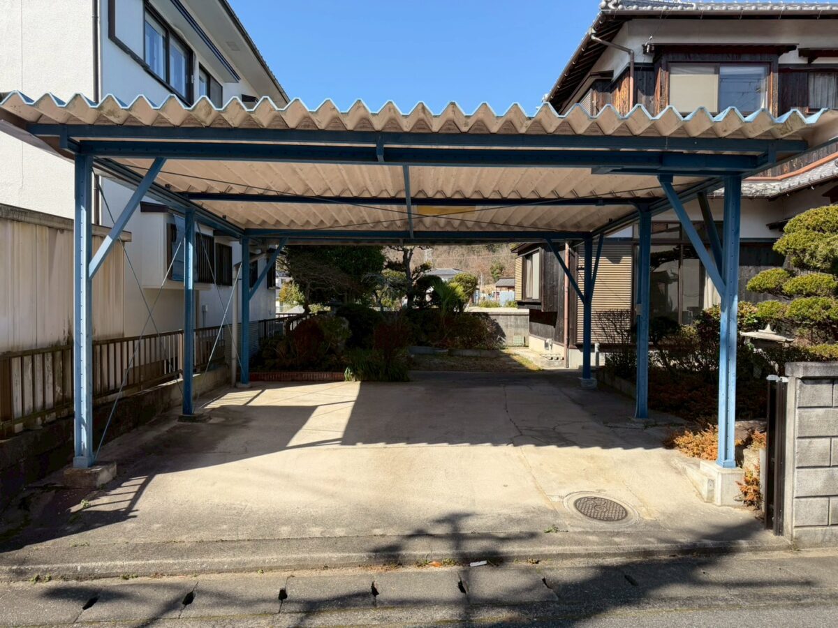 ブルーのカーポートが、さりげなくいいアクセント。